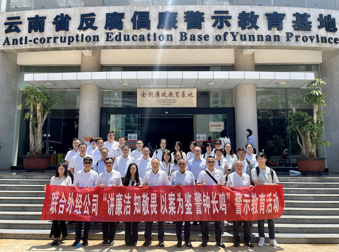 為持續(xù)推進“清廉聯(lián)合外經(jīng)”建設,開展“講廉潔、知敬畏、轉作風、防風險、促發(fā)展”以案為鑒、以案促改活動,聯(lián)合外經(jīng)公司黨委、紀委近日組織參觀云南省反腐倡廉警示教育基地,公司在昆領導干部及黨員職工30余人參加活動。