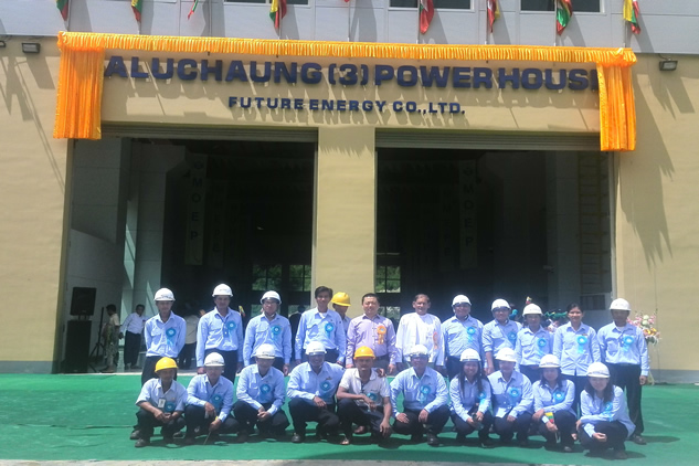 布魯橋3電站屬于Baluchaung河梯級開發(fā)的第三級電站,總裝機2x26MW。2014年初兩臺機先后投入商業(yè)運行。2015.8.22布魯橋3電站業(yè)主Future Energy公司舉行了竣工典禮, 緬甸政府總統(tǒng)辦公室,電力部以及克耶邦當?shù)毓賳T應(yīng)邀參加了典禮,電站業(yè)主對我公司表示了感謝, 并對供貨設(shè)備質(zhì)量,穩(wěn)定性,效率以及服務(wù)等給予了高度評價。