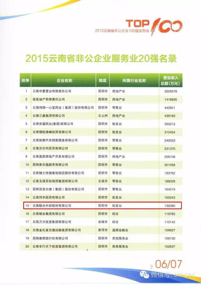 云南省非公企業(yè)服務(wù)業(yè)20強(qiáng)15名;