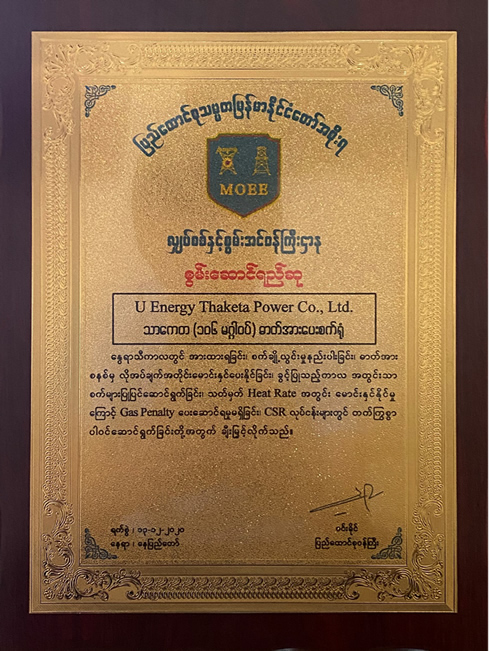 2020年12月13日緬甸電力與能源部在內(nèi)比都舉行年會(huì),聯(lián)合能源達(dá)克鞳電力有限公司(U Energy Thaketa Power Co., Ltd)榮獲年度“優(yōu)秀電廠”表彰。