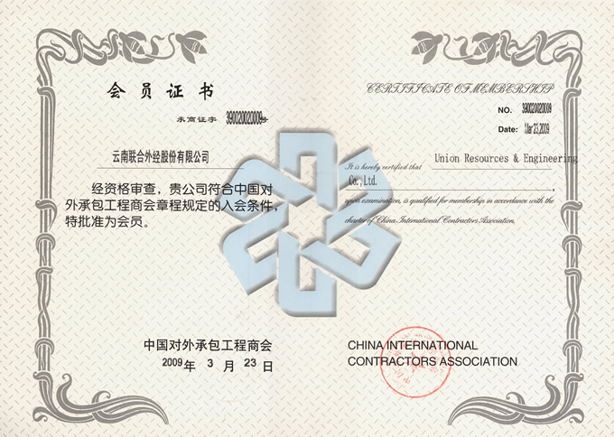 中華人民共和國對外承包工程資格證書