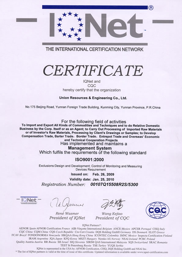 世界認證聯(lián)盟證書(IQNET)
